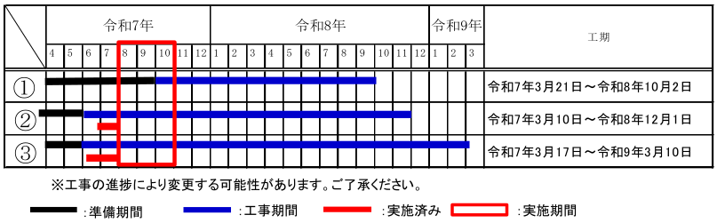 10月~12月に行う予定で各工事担当区間にて進めております。
