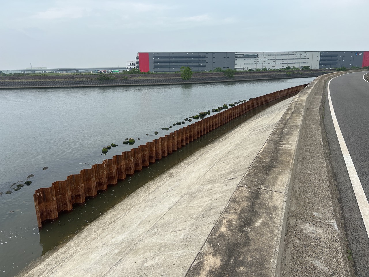 鍋田川で地震・高潮対策のための矢板を設置する工事が竣工しました。