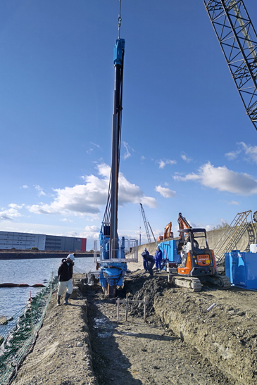 城南海岸での高潮対策のための地盤改良工事が竣工しました。