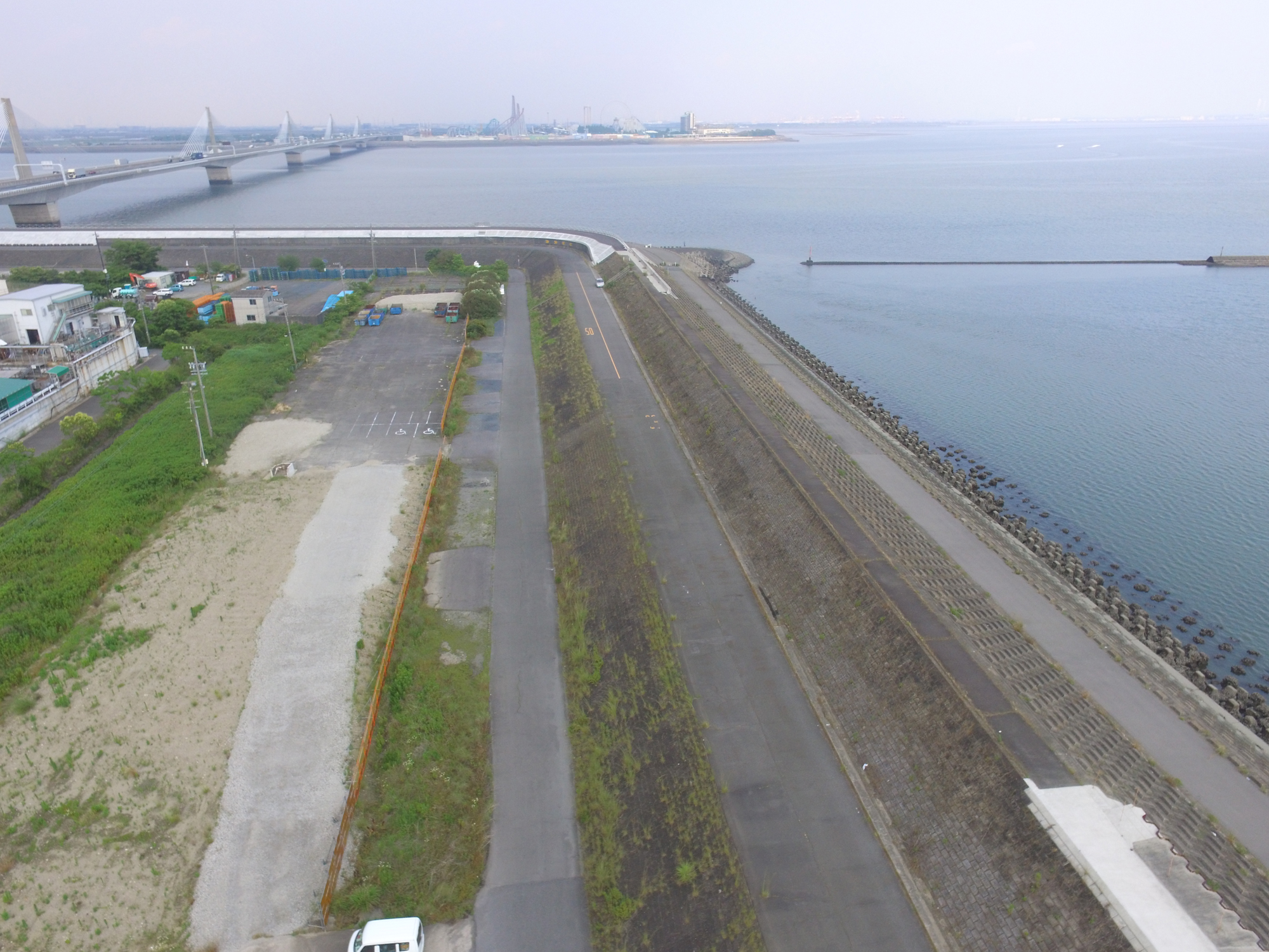 こちらの現場は旧排水機場の解体撤去し、地盤改良と護岸後に場内整備をした工事現場です。小学校での課外授業でもお世話になった現場です