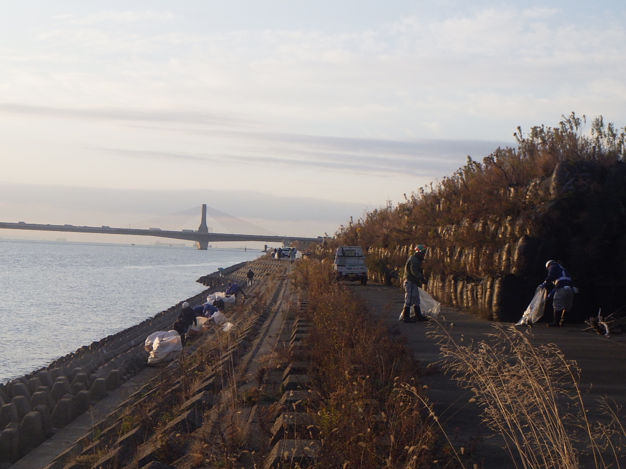 この時も大量の家庭ごみや上流から流れてくる大小さまざまなごみを皆で集めました。 |