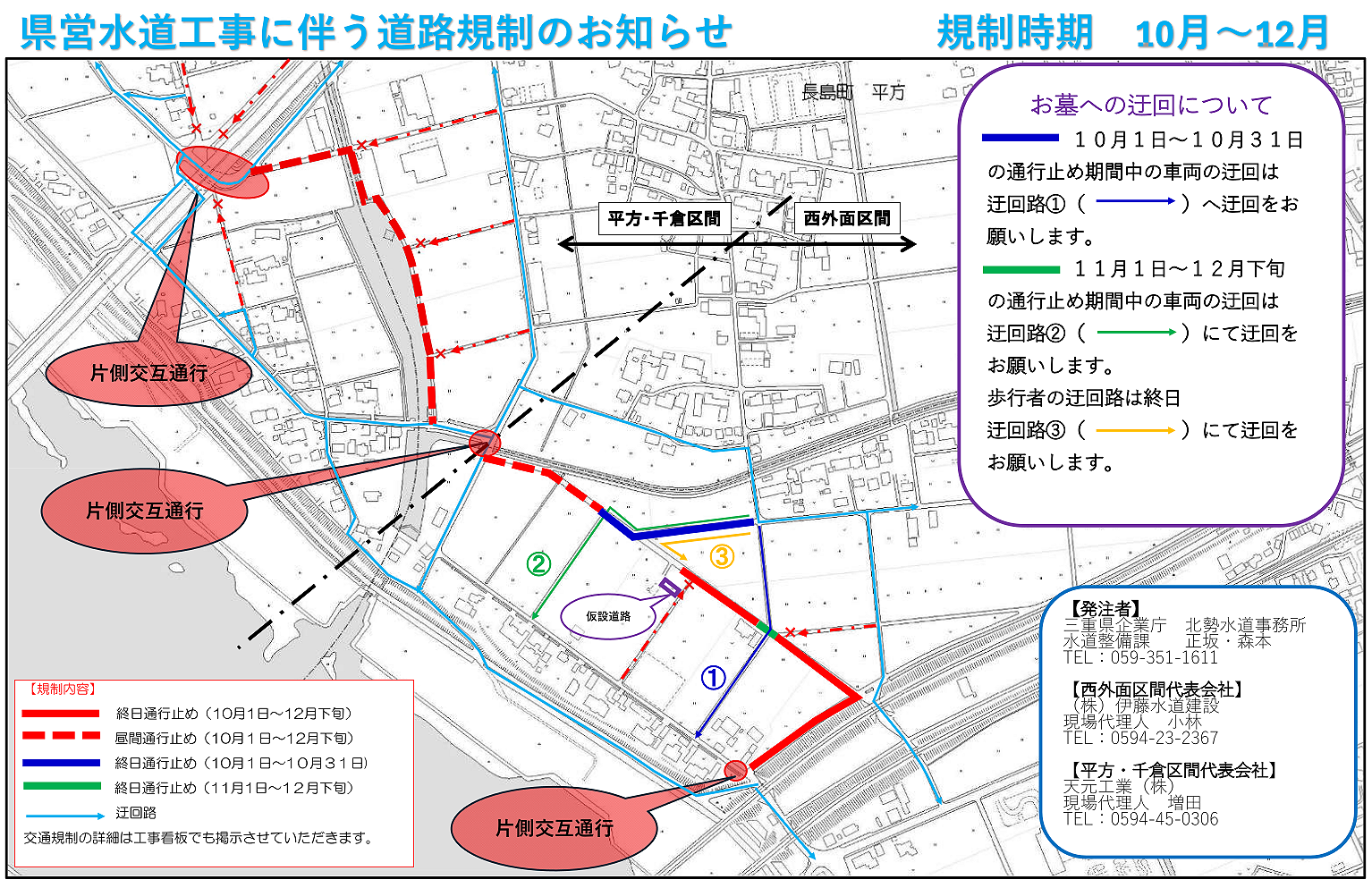 ・交通誘導員を配置しますので、誘導にしたがい迂回をお願います。
